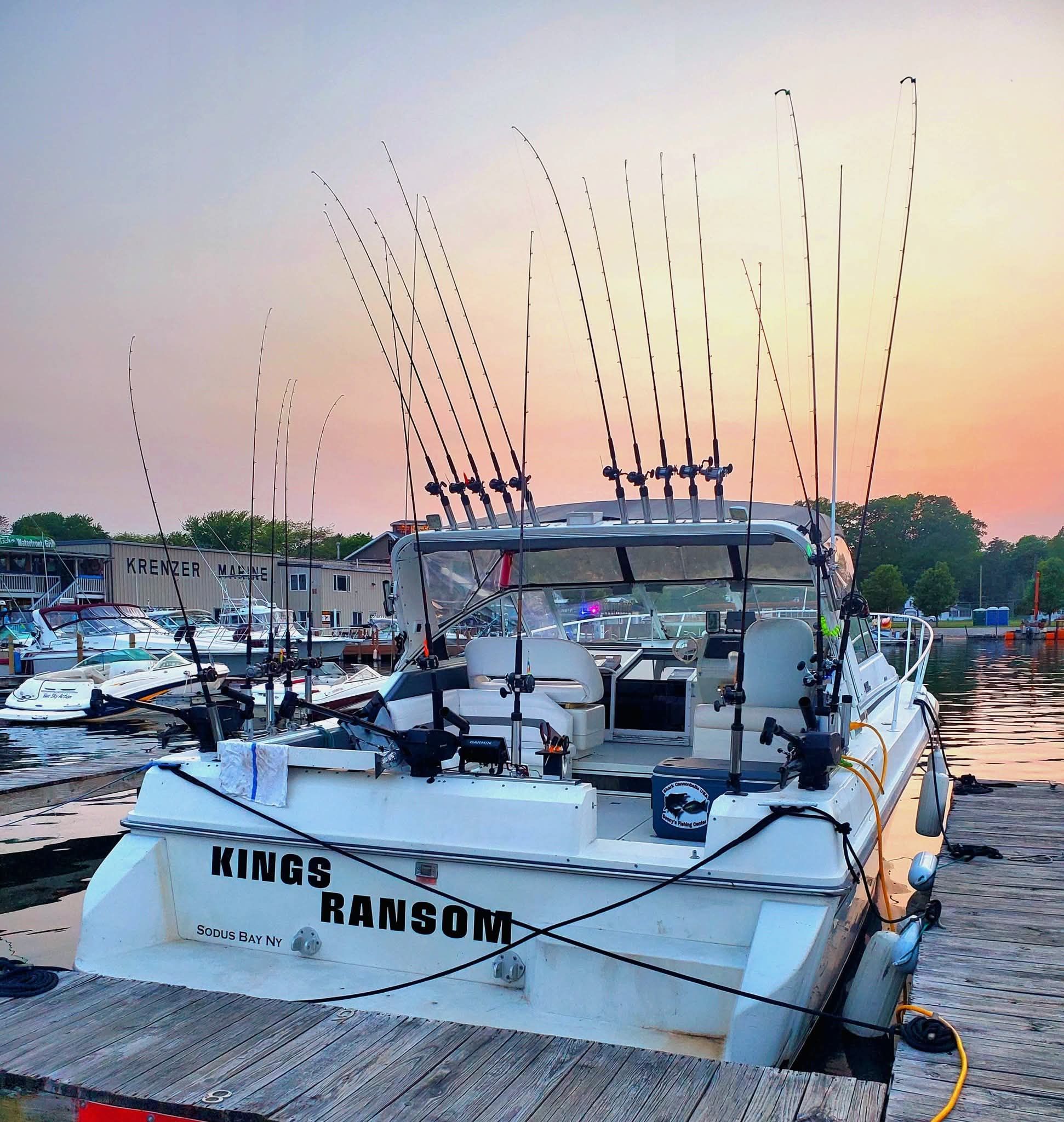 The Kings Ransom is a spacious, fully outfitted fishing vessel built for both comfort and performance on Lake Ontario. Designed to handle the lake’s varying conditions, the boat features advanced electronics, modern safety gear, and precision trolling systems to support productive days on the water. Guests appreciate the open deck layout, ample seating, and clean onboard restroom—all designed to make each trip as enjoyable as it is efficient. Whether you’re on the move or waiting on a bite, the Kings Ransom provides a smooth, stable platform that keeps your focus where it belongs—on the fish.